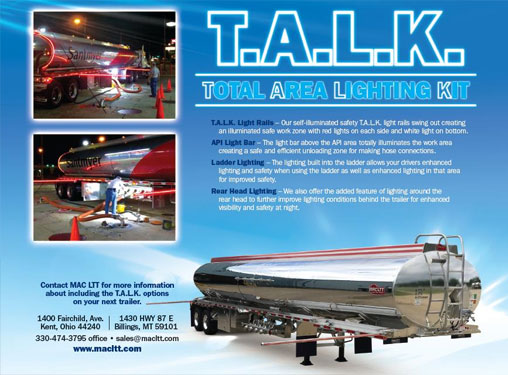 API Light Bar - The light bar above the API area totally illuminates the work area creating a safe and efficient unloading zone for making hose connections.